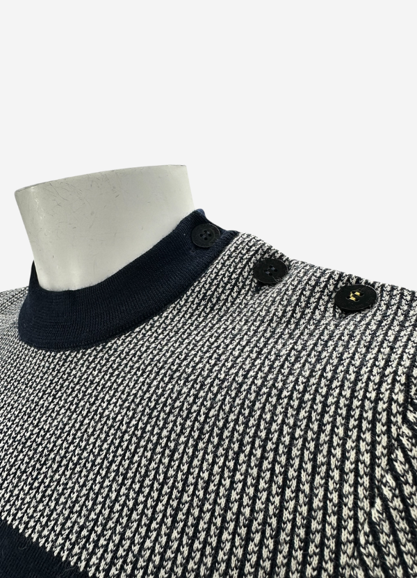 - Détails jacquart tricoté en haut de corps, coudière et gravé sur un bouton